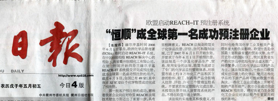 首頁 關于恒順 產(chǎn)品介紹 關于Reach MSDS下載 在線定單 新聞 文化 證書 聯(lián)系我們